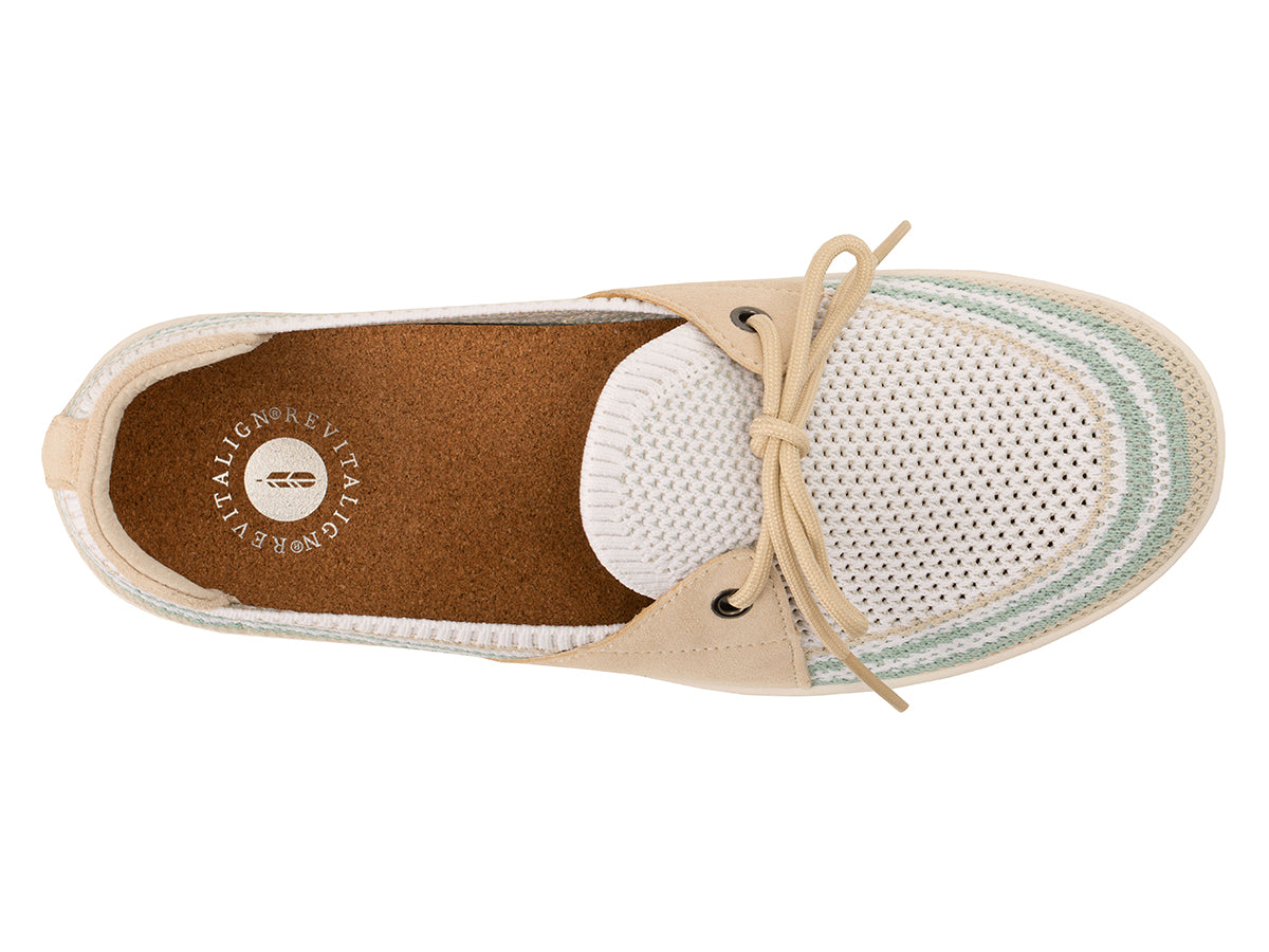 Designed for breathability and lasting comfort, the Tempe is a fashionable slip-on that perfectly balances a tailored silhouette with high-performance support. This style expertly combines lightweight, breathable textiles with dynamic stretch-mesh zones and genuine silky-smooth leather to guide the foot naturally through every stride. Built to be your year-round staple, the Tempe is engineered with Revitalign® technology to provide the structural integrity and relief required for those managing Plantar Fasciitis.
